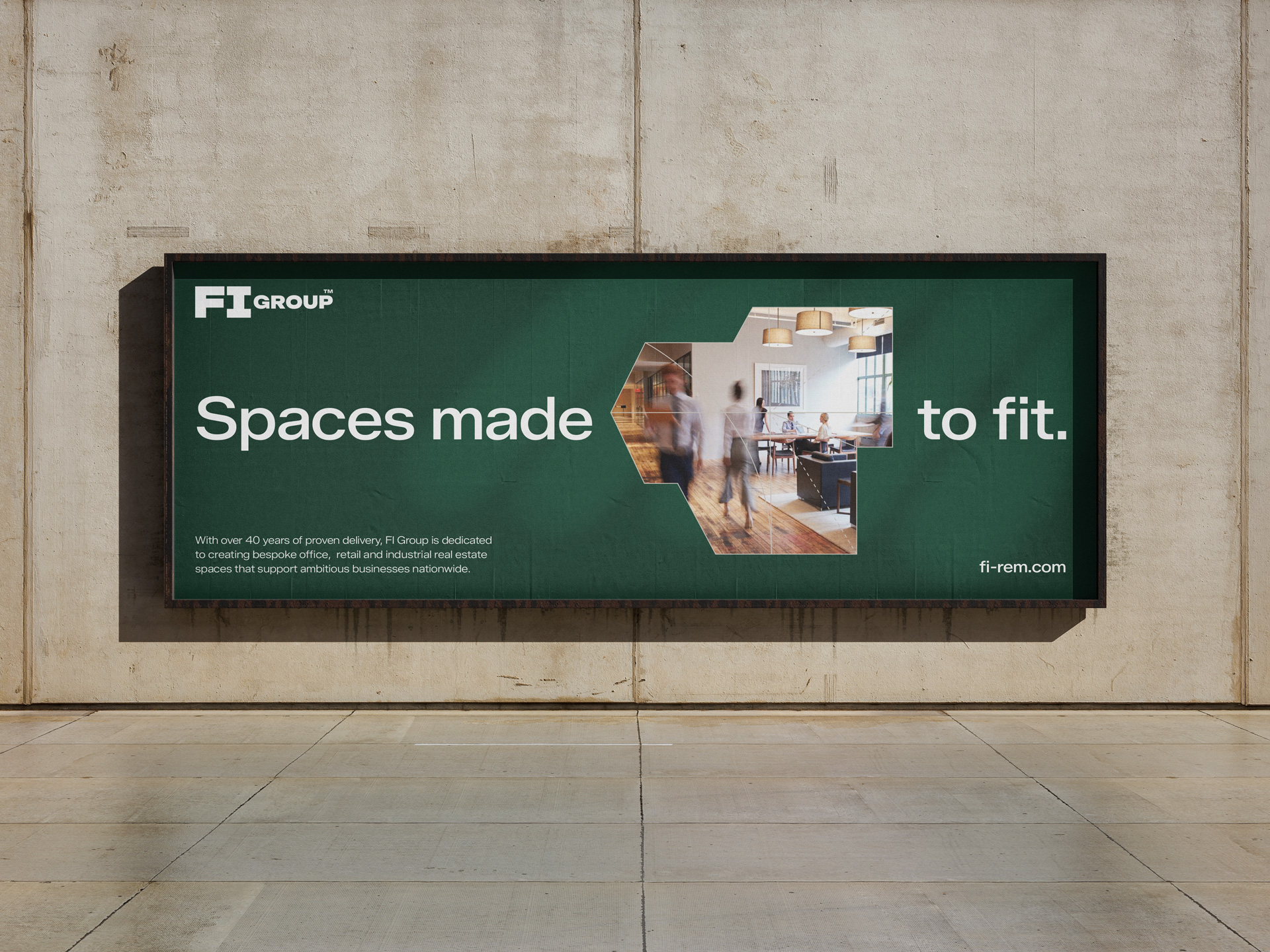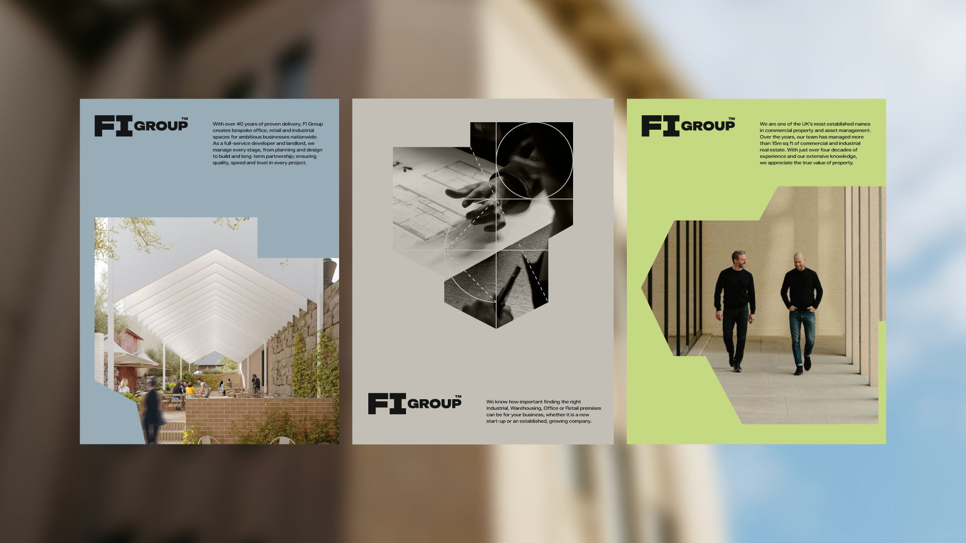 Despite its scale and full-service capability, FI Group was often misunderstood. A fragmented brand structure and inconsistent visual language meant the business was frequently perceived as a traditional property agent, rather than a developer that designs and builds bespoke spaces at speed. FI needed a brand that could close this perception gap, clearly communicating its design-and-build expertise, long-term mindset and ability to shape spaces around real operational needs, without losing the entrepreneurial character at its core.