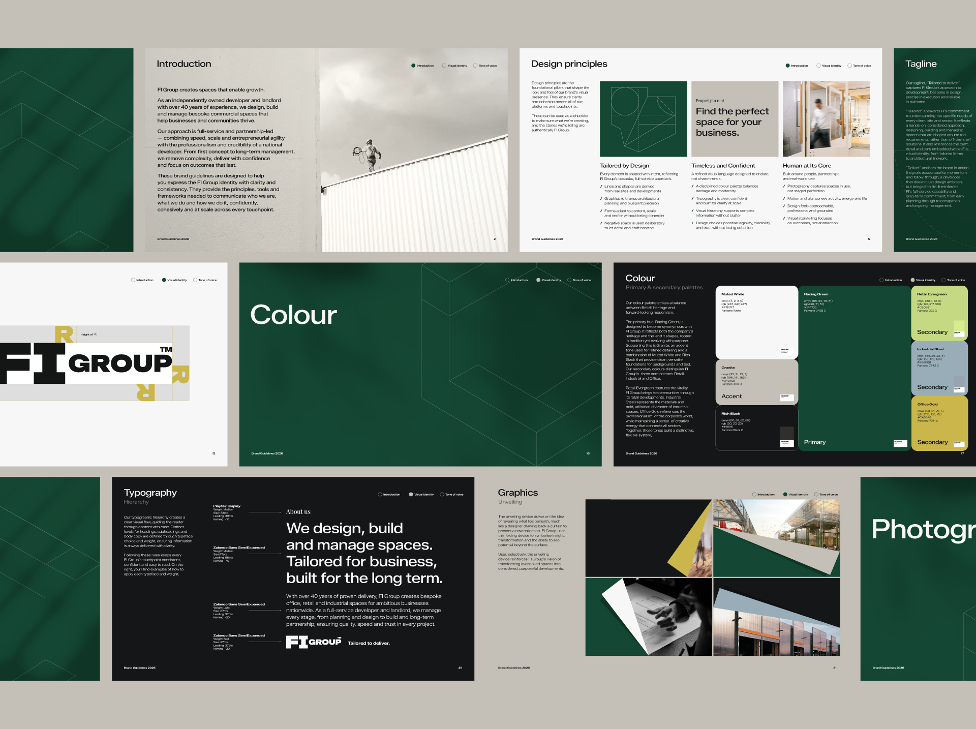 FI Group is an independently owned developer and landlord with over 40 years of experience delivering commercial spaces across the UK. Operating across office, retail, industrial and open storage, FI doesn’t work from templates, every project is designed, built and managed around the specific needs of its tenants and partners. We worked with FI Group to create a brand that mirrors this approach: a unified identity shaped by precision, craft and delivery, reflecting how FI tailors every development from the ground up.